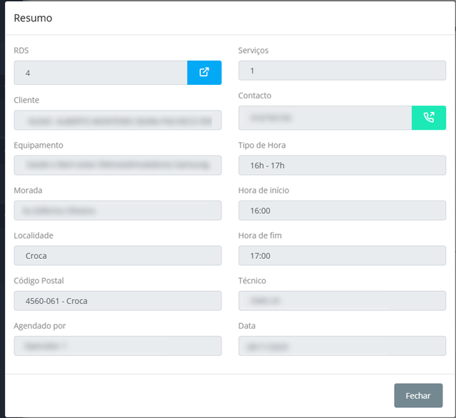 Ao passar o ponteiro do rato sobre o cartão do serviço, surge um pop-up com informação adicional. Ao efetuar duplo clique no serviço, é aberta uma janela com informação completa do serviço, incluindo a opção de aceder ao RDS correspondente.