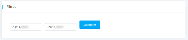 Na secção de filtros, é possível definir o período desejado e clicar em Submeter para carregar os dados correspondentes.