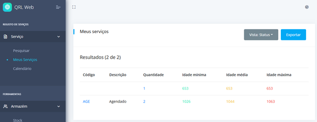 O menu Meus Serviços apresenta todos os Registos de Serviço (RDS) aos quais o utilizador tem acesso.